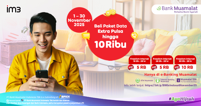 | PT Bank Muamalat Indonesia Tbk berizin dan diawasi oleh Otoritas Jasa Keuangan (OJK), Bank Indonesia (BI), serta merupakan peserta penjaminan Lembaga Penjamin Simpanan (LPS). |