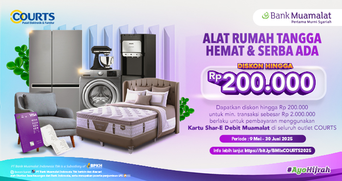 | PT Bank Muamalat Indonesia Tbk berizin dan diawasi oleh Otoritas Jasa Keuangan (OJK), Bank Indonesia (BI), serta merupakan peserta penjaminan Lembaga Penjamin Simpanan (LPS). |